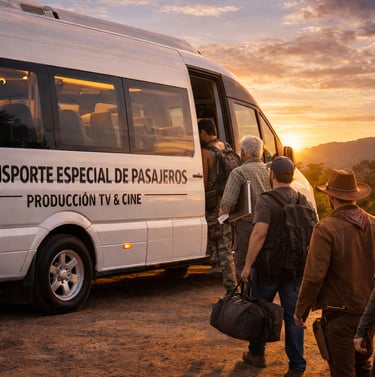 Movilidad especializada para producciones audiovisuales, garantizando comodidad, seguridad y puntualidad en cada rodaje.